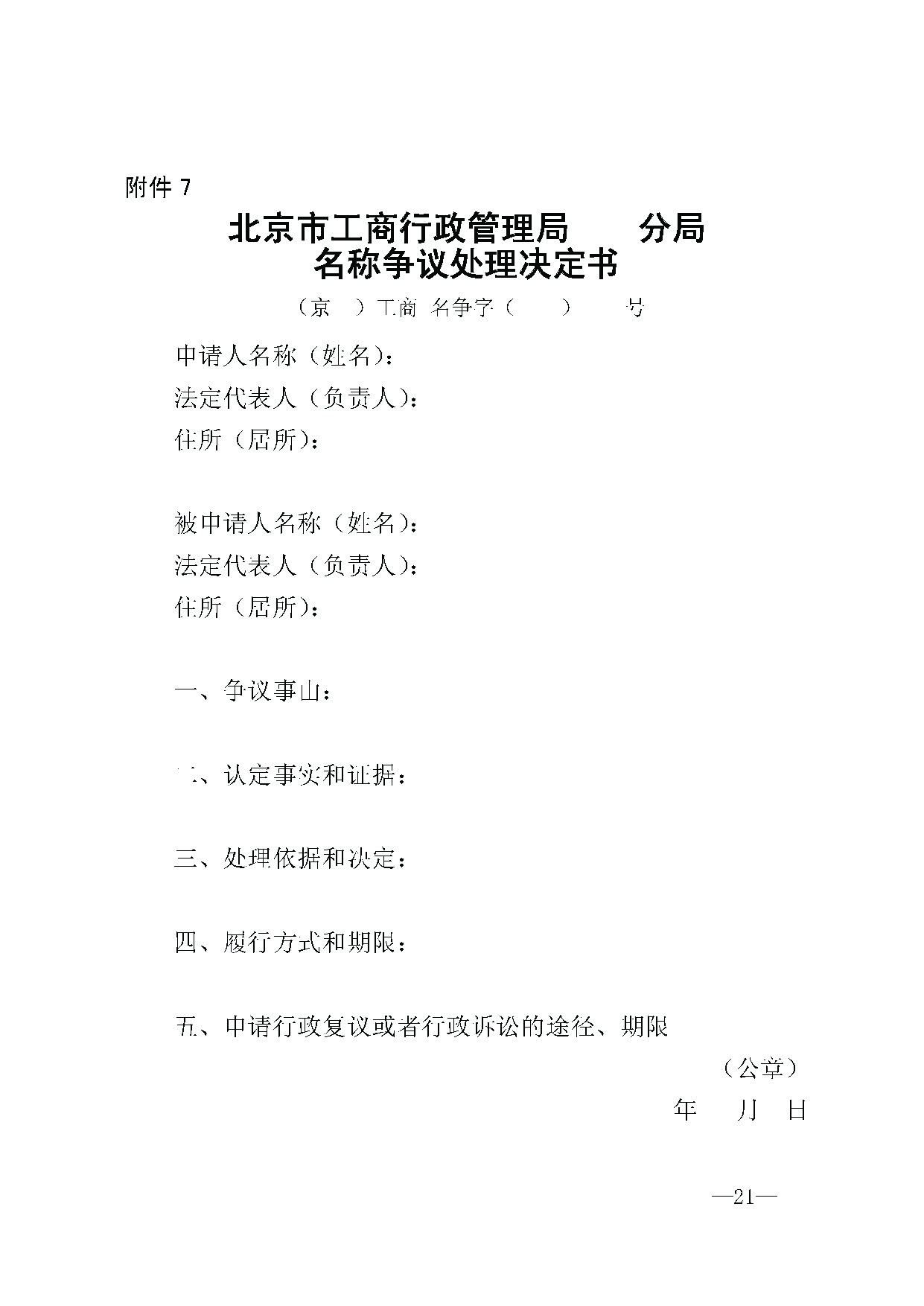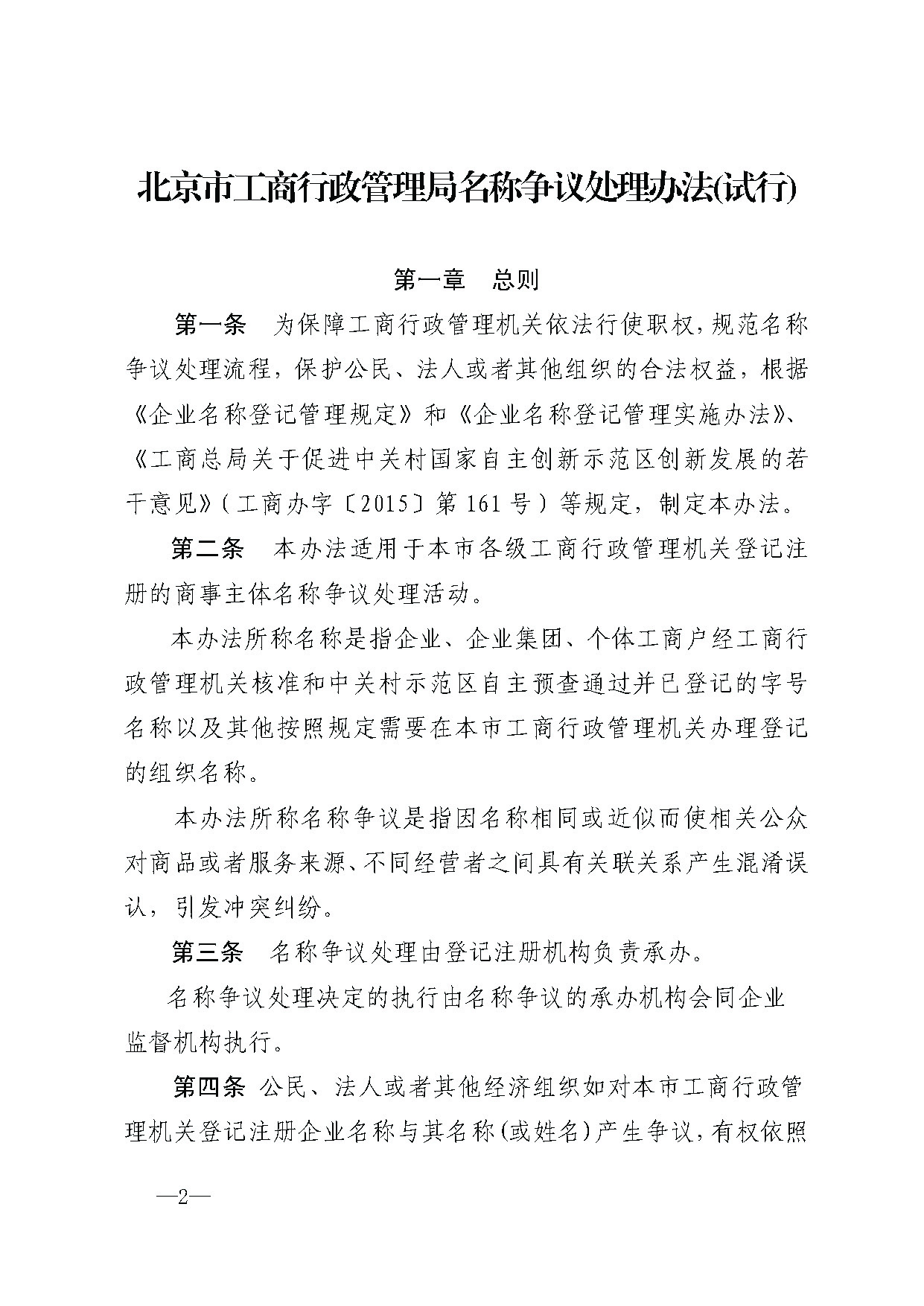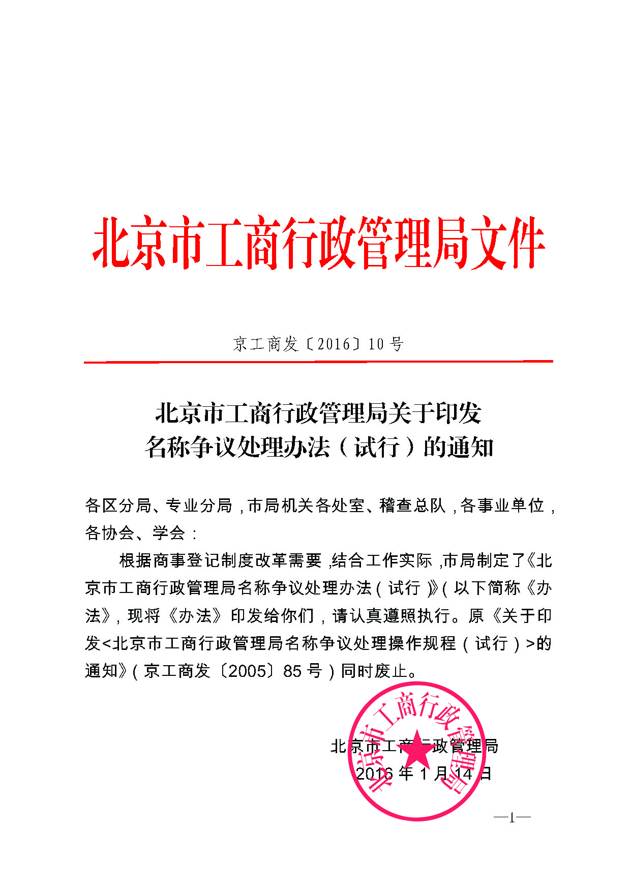 北京市工商行政管理局关于印发名称争议处理办法(试行)的通知