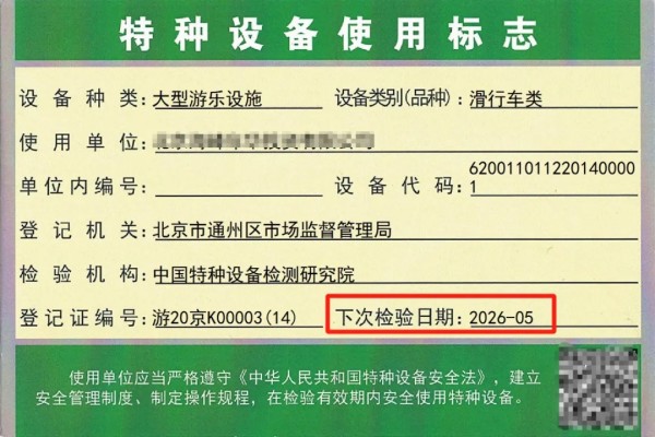 摩天轮、过山车这类大型游乐设施,都得办理使用登记,检验合格后才有“特种设备使用标志”呢。