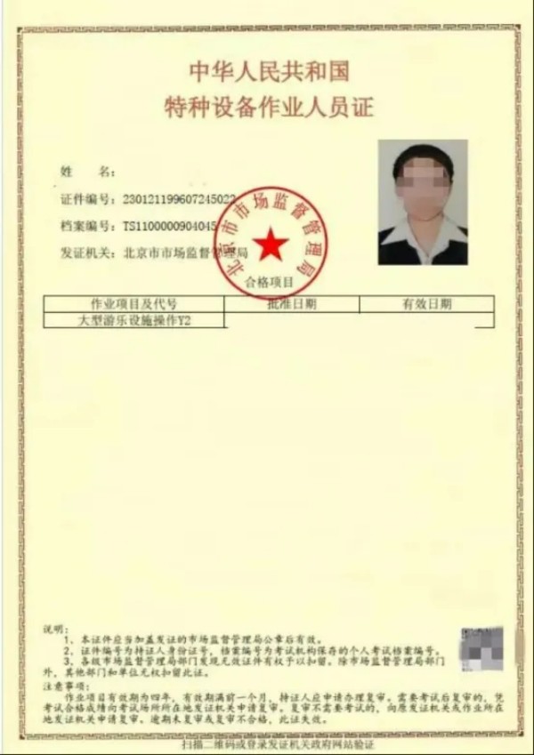 大型游乐设施的操作人员、修理人员,都要持证上岗。有专业证书加持,操作更规范,咱们玩着也更安心。