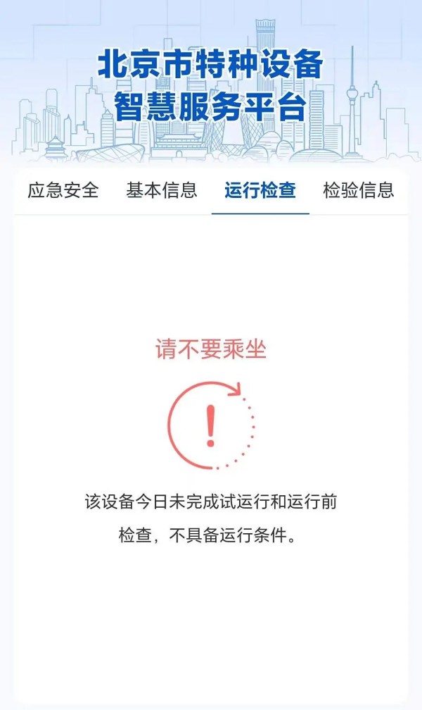 在北京市乘坐大型游乐设施时,可以在排队区扫描“二维码”查看运行前检查和试运行的情况,如果提示未开展运行前检查和试运行,千万不要乘坐哦。