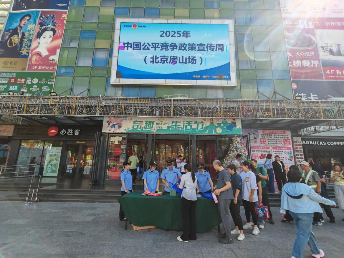 房山区市场监管局在购物中心发放宣传品,平谷区市场监管局组织社区居民观看公平竞争宣传片,以直观、生动的方式传播公平竞争常识。