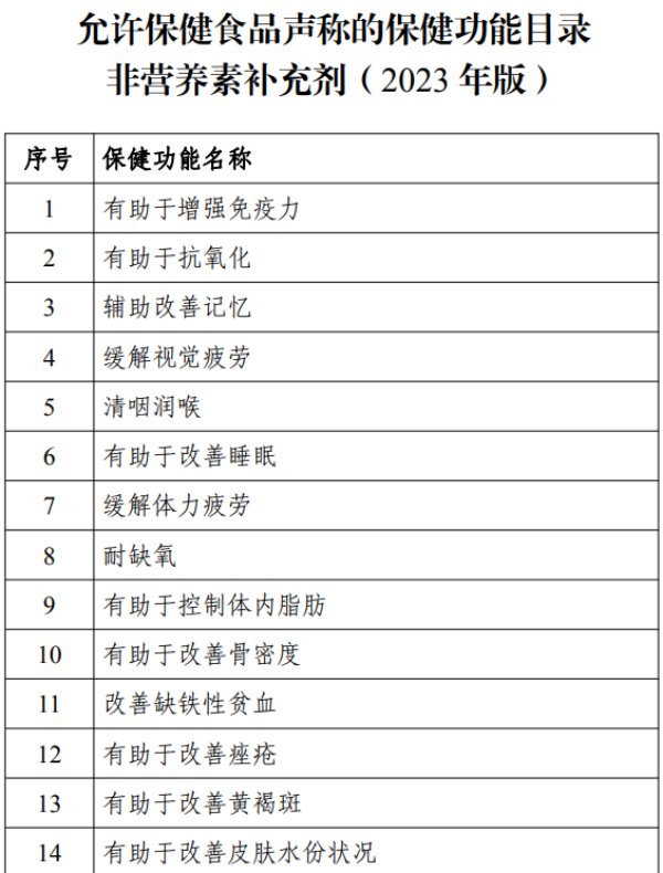 《允许保健食品声称的保健功能名录》