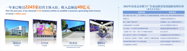 近年来,北京市市场监督管理局以《促进广告业发展若干措施》《促进数字广告业高质量发展的指导意见》等政策领航,持续丰富促进广告业发展“工具箱”,创新推出“京彩广告贷”,制定全国首个数字广告企业“走出去”工作指引,建成海淀、丰台、经开、朝阳四个数字广告产业园区,发布数字广告业高质量发展创新案例。
