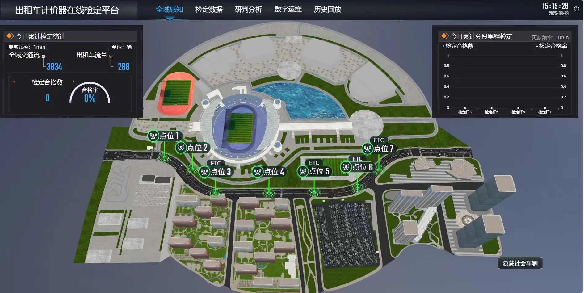 目前,北京已在奥体中路建成全国首个在线检定示范站点。车辆只需驶过1.2公里的检定路段,即可完成“无感检定”,全程无需停车、无需人工参与,真正实现“科技赋能、路过即检”。同时,系统对接北京市强制检定公共服务平台,出租汽车公司可通过手机完成报检、查询、下载证书等操作,实现“全程网办”。