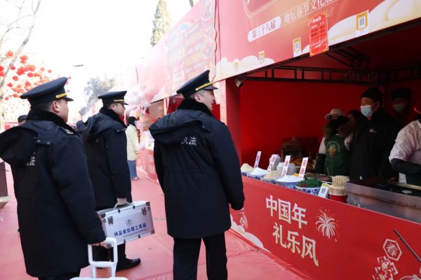 为保障春节庙会食品安全,市市场监管局提前谋划、靠前服务,围绕资质核验、摊位布局、进货查验、设备设施等关键环节,开展“一对一”培训、面对面指导,帮扶举办方和经营者提升食品安全管理能力和责任意识,助力20余家老字号及特色食品商户高效入驻、合规经营,既丰富了庙会的文化内涵,也提升了整体食品安全品质。