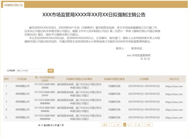 拟强制注销公告