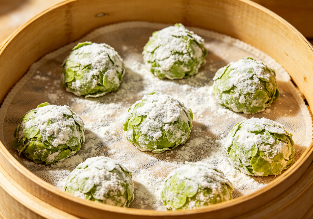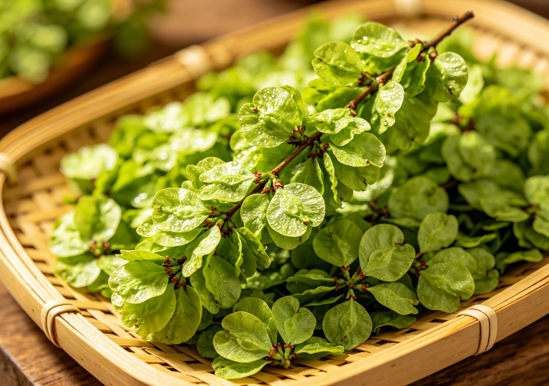 新鲜榆钱:颜色翠绿、饱满圆润,手感柔软,闻着有清新草木香。